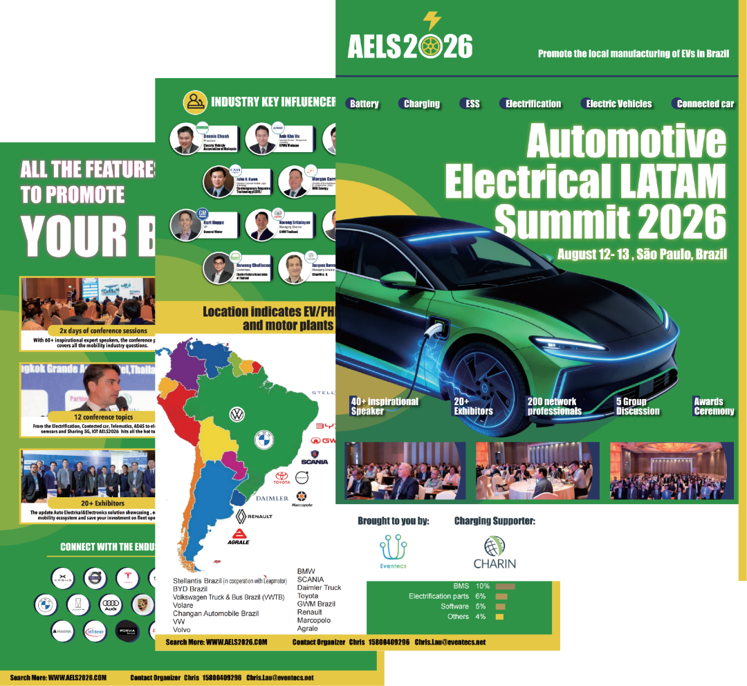 Automotive Electrical LATAM Summit 2026 (Exhibition), to be held August 12–13, 2026 in São Paulo, Brazil., Plan to gather 200+ attendee from automotive Electrical & battery market, which will brings government, association, OEM,tier1, Battery, E-motor ,Electrification , CPO, Charger provider, utility, powertrain ,motor, battery, testing, adhesives, sealants, Tapes,consultancy Logistics , Sensor, testing, fleet tracking, Camera, Lidar, ADAS, Autonomous Driving, Navigation, mobility sharing and etc together, the electrification and auto-electronic are booming worldwide and how to commercialize the tech in Brazil , #AELS2026 will give you the answer.